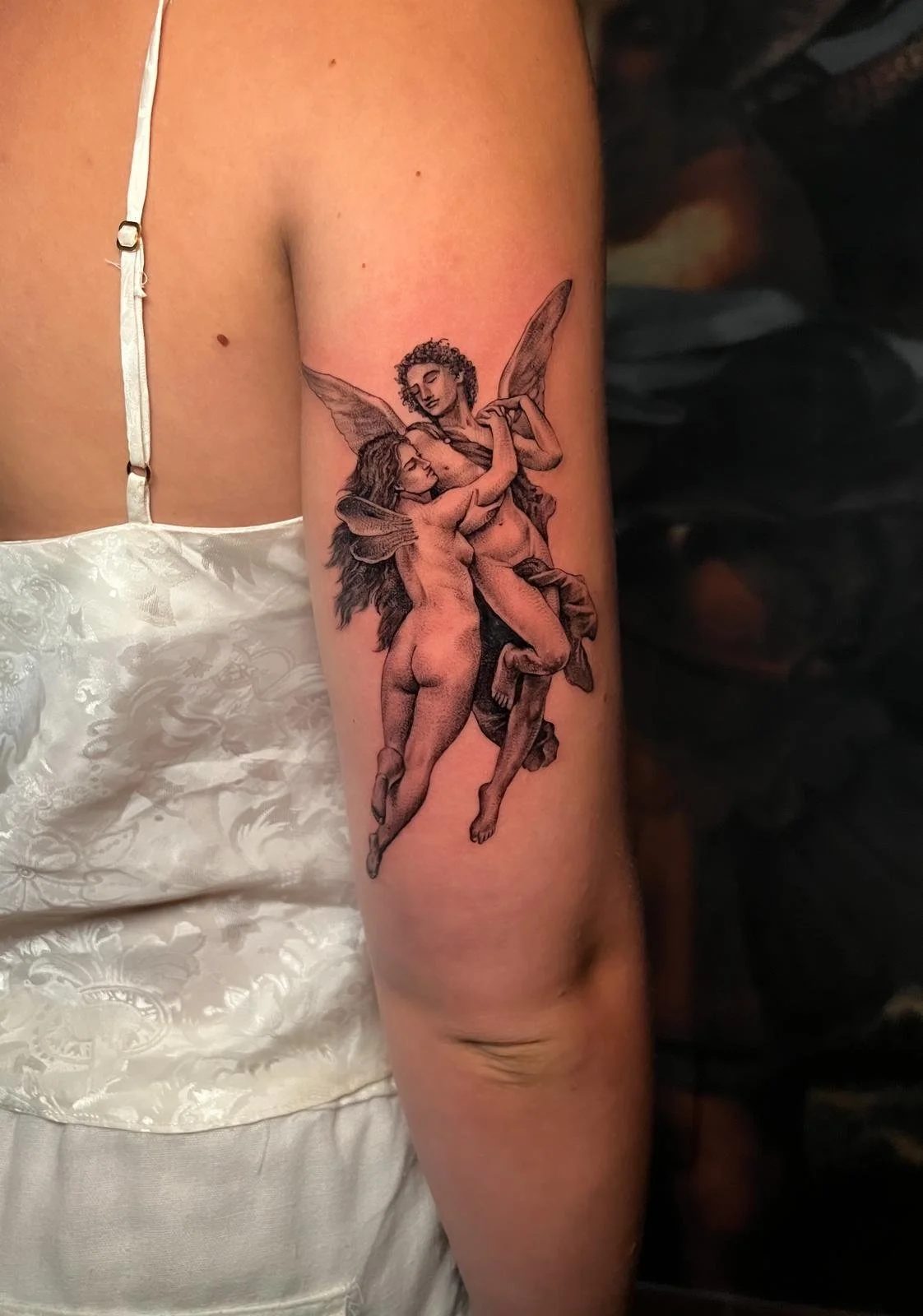 I sit under the needle for about four hours all the while breathing in the memory that’s forming around me. The rhythm of the Italian language fills the space. The hum and buzz of the needle, the stinging of my skin and the rawness of the wound as he wipes it with the soapy paper towel.